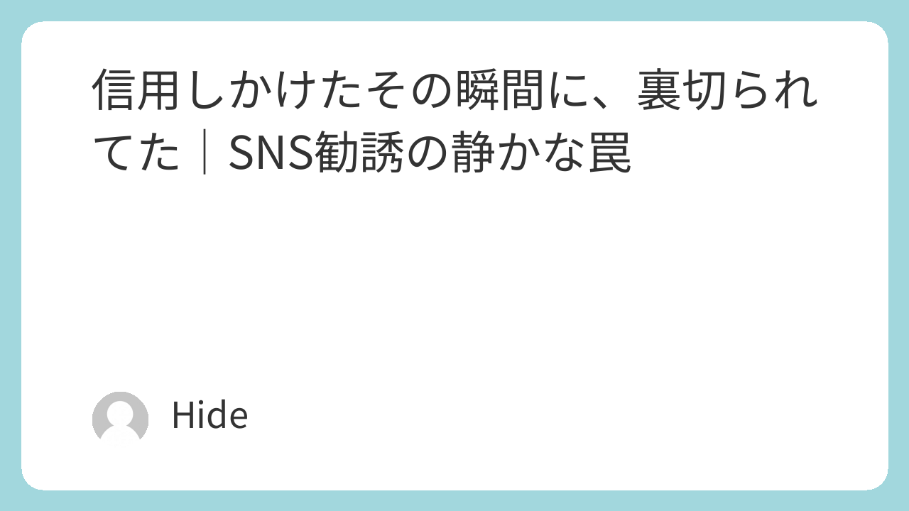「静かに仕組まれた“罠”」があったかもしれないそんな経験を共有します。